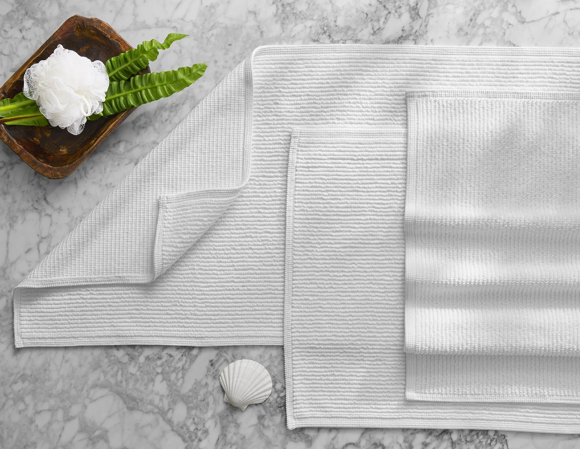 An inviting bath rug is the perfect detail to make a hotel bathroom feel as comfortable as home.