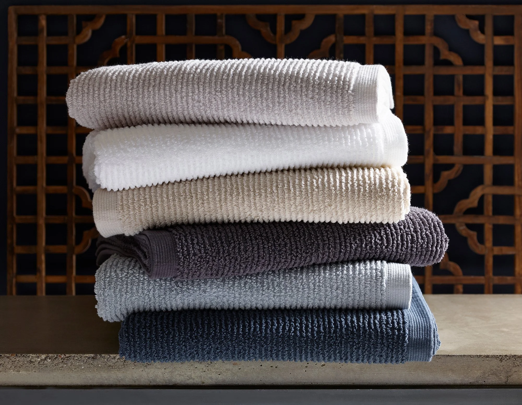 Zero-twist yarns with a lofty ribbed texture make our Aman towels irresistibly soft, plush, and absorbent. Featuring a spa-inspired palette of rich neutrals and a modern woven border.